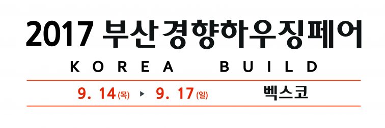 ​ 2017 부산경향하우징페어 (KOREA BUILD in Busan 2017) 기      간 : 9월 14일(목)~17일(일), 4일간장      소 : 벡스코동시개최 : 2017 부산리빙앤라이프스타일전시규모 : 300 개 사 / 700 부스 / 13,254 sqm주      최 : ㈜...
