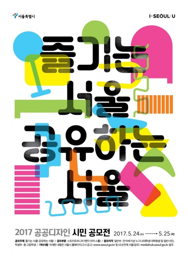 서울시가 서울도심 속에서 진행되는 축제, 행사, 이벤트 장소 등에 설치할 스트리트 퍼니처(벤치․의자․스툴)을 대상으로 시민 여러분의 창의적인 아이디어 발굴을 위해 “2017 공공디자인 시민 공모전”을 다음과 같이 공고한다. <개요>공모주제 : 즐기는 서울! 공유하는 서울!공모부문 : 스트리트...